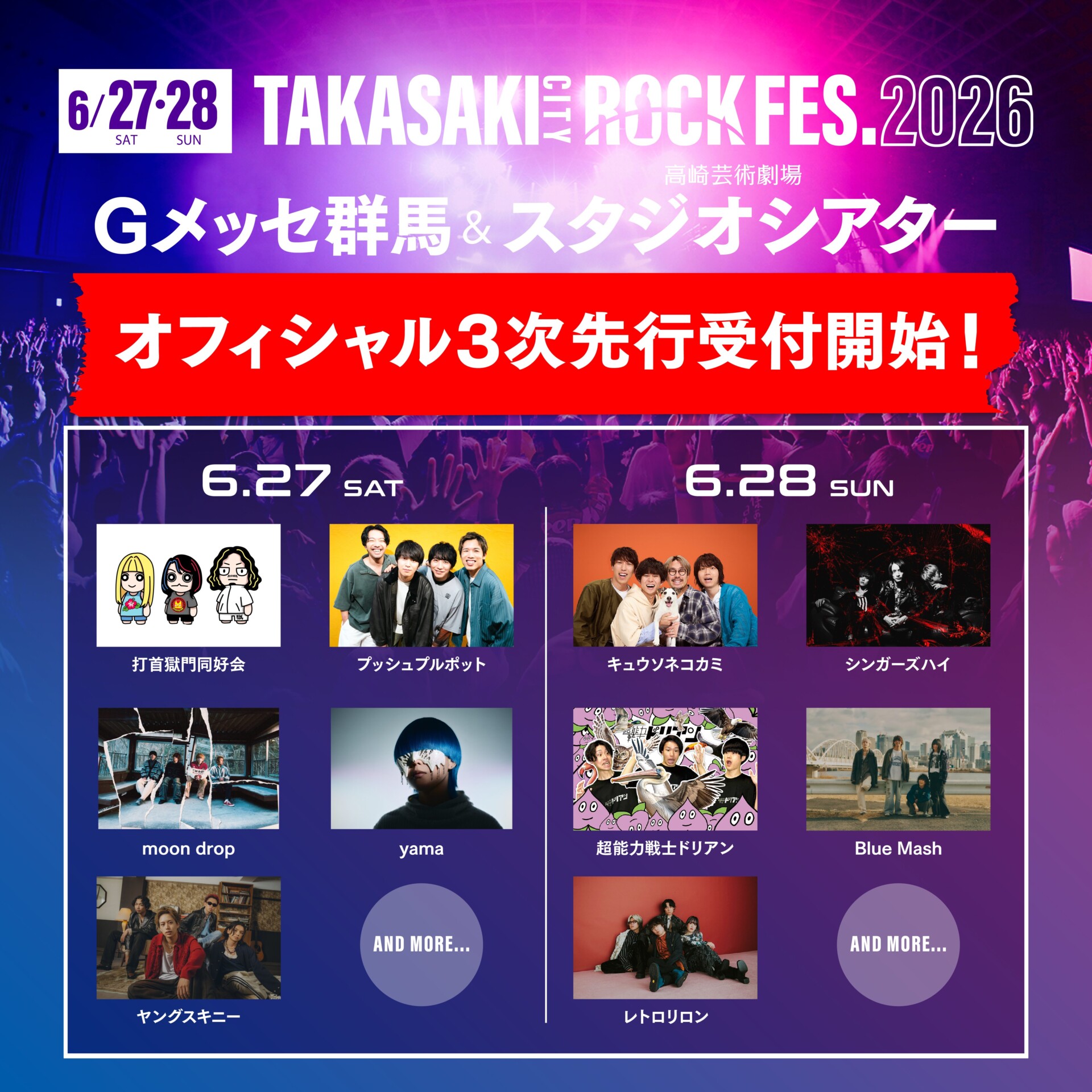 本日2/20(金)より、タカサキロック2026 Gメッセ群馬&高崎芸術劇場スタジオシアターの