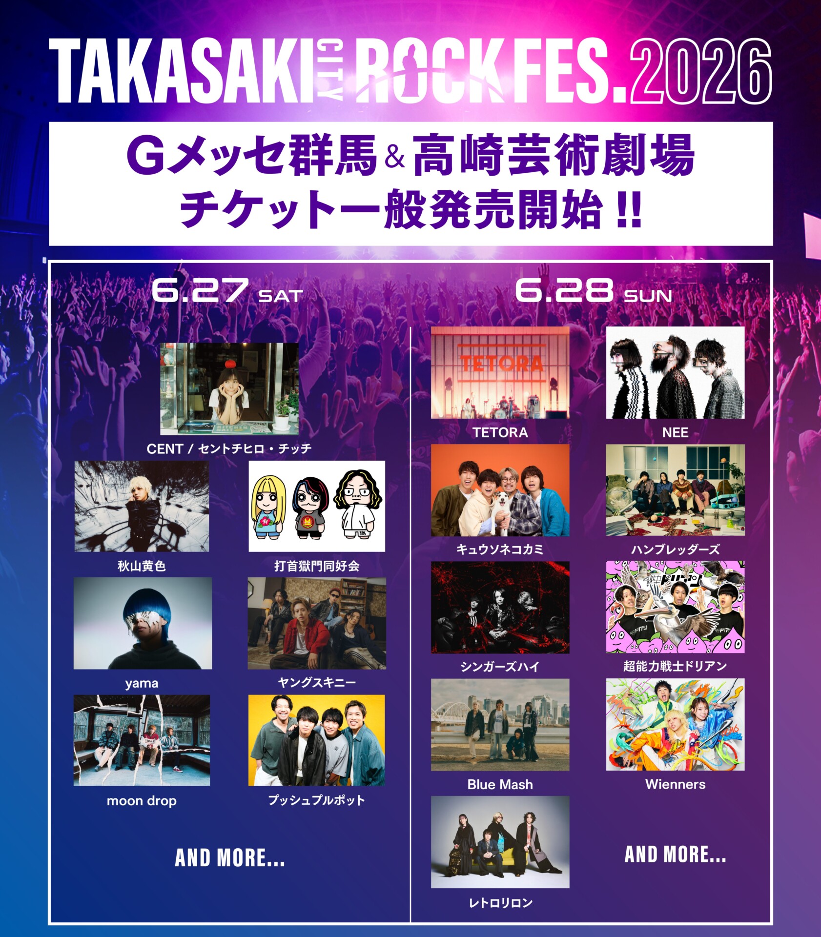 4/3(土)10:00より、タカサキロック2026 Gメッセ群馬&高崎芸術劇場のチケットの一般発売を開始します!
